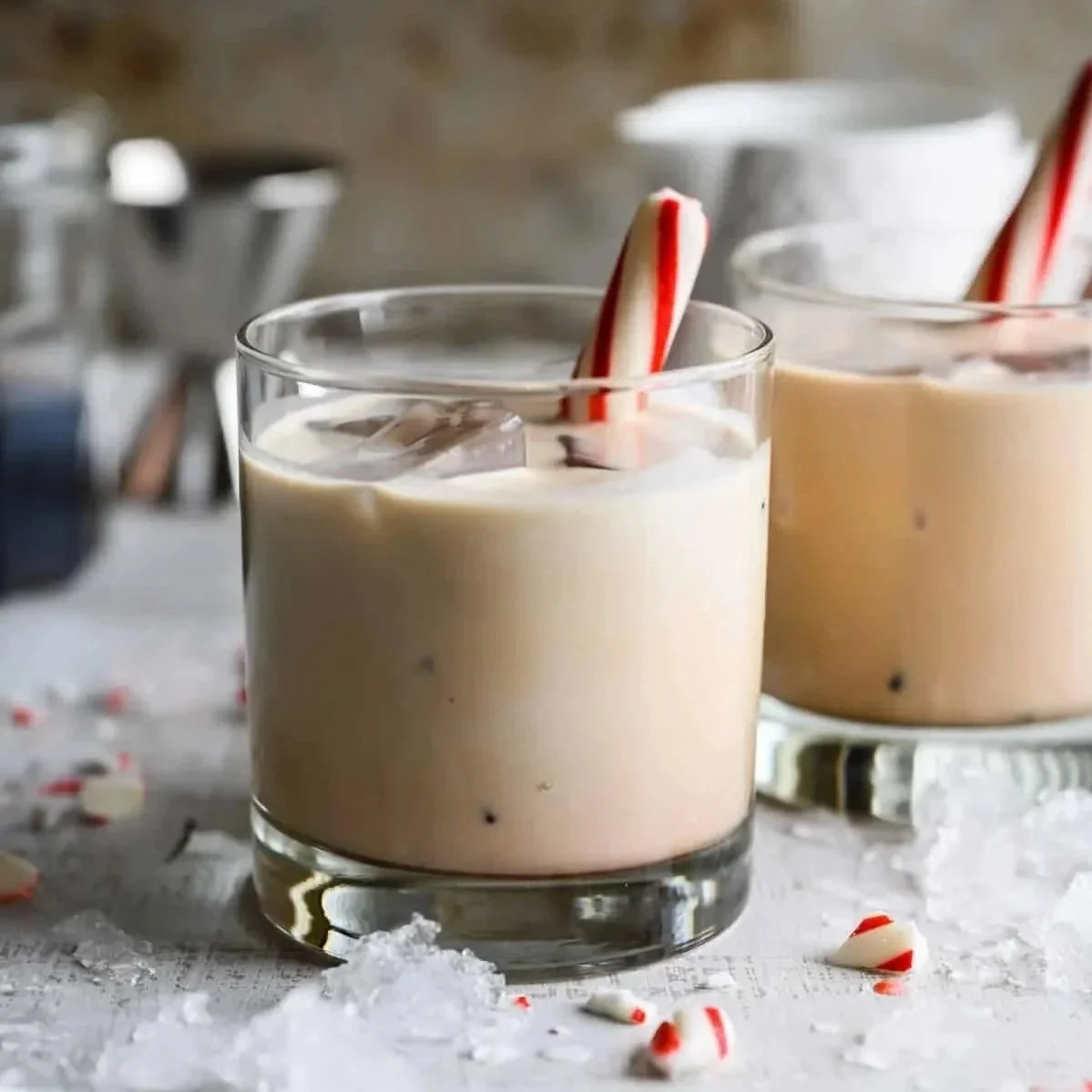 Top with a small amount of whipped cream and garnish with a candy cane.