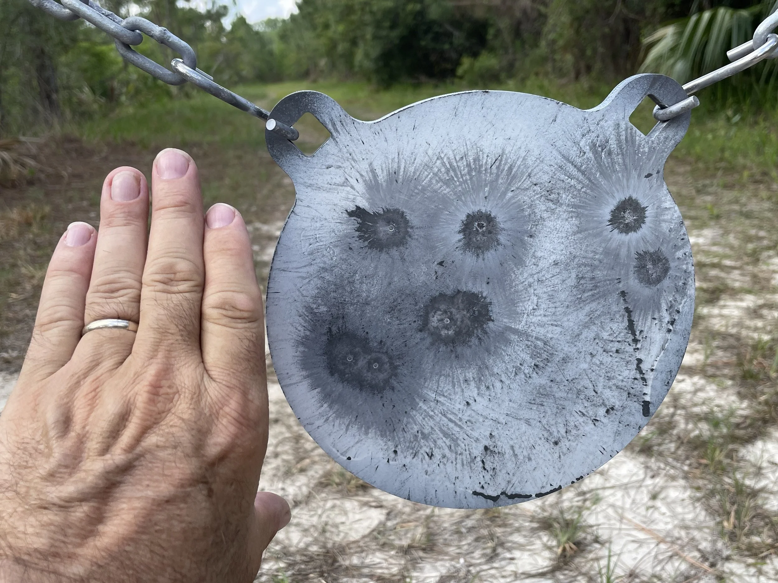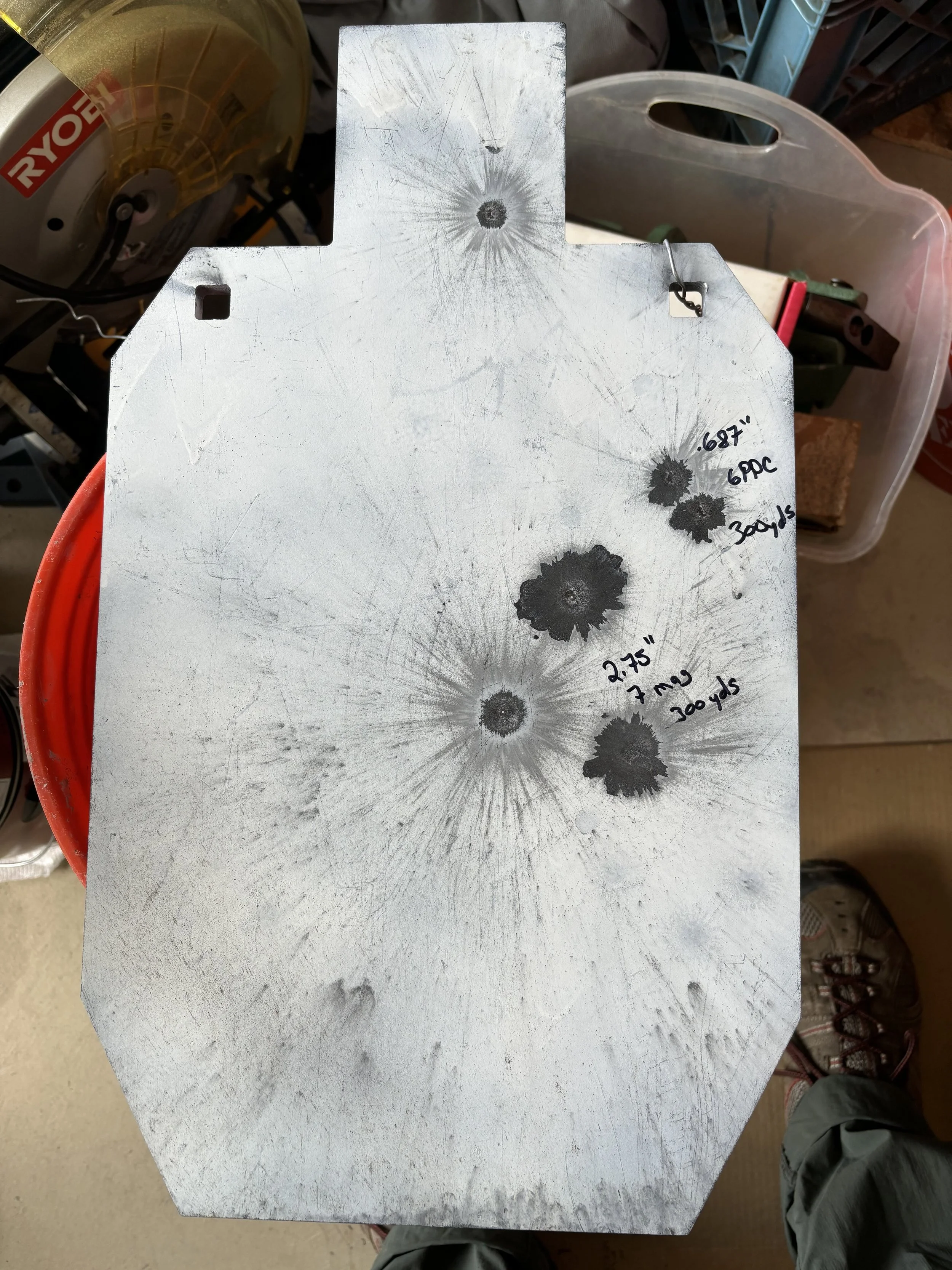 .308, 7 shot grouping at 561 yards (Rick’s hand for scale)