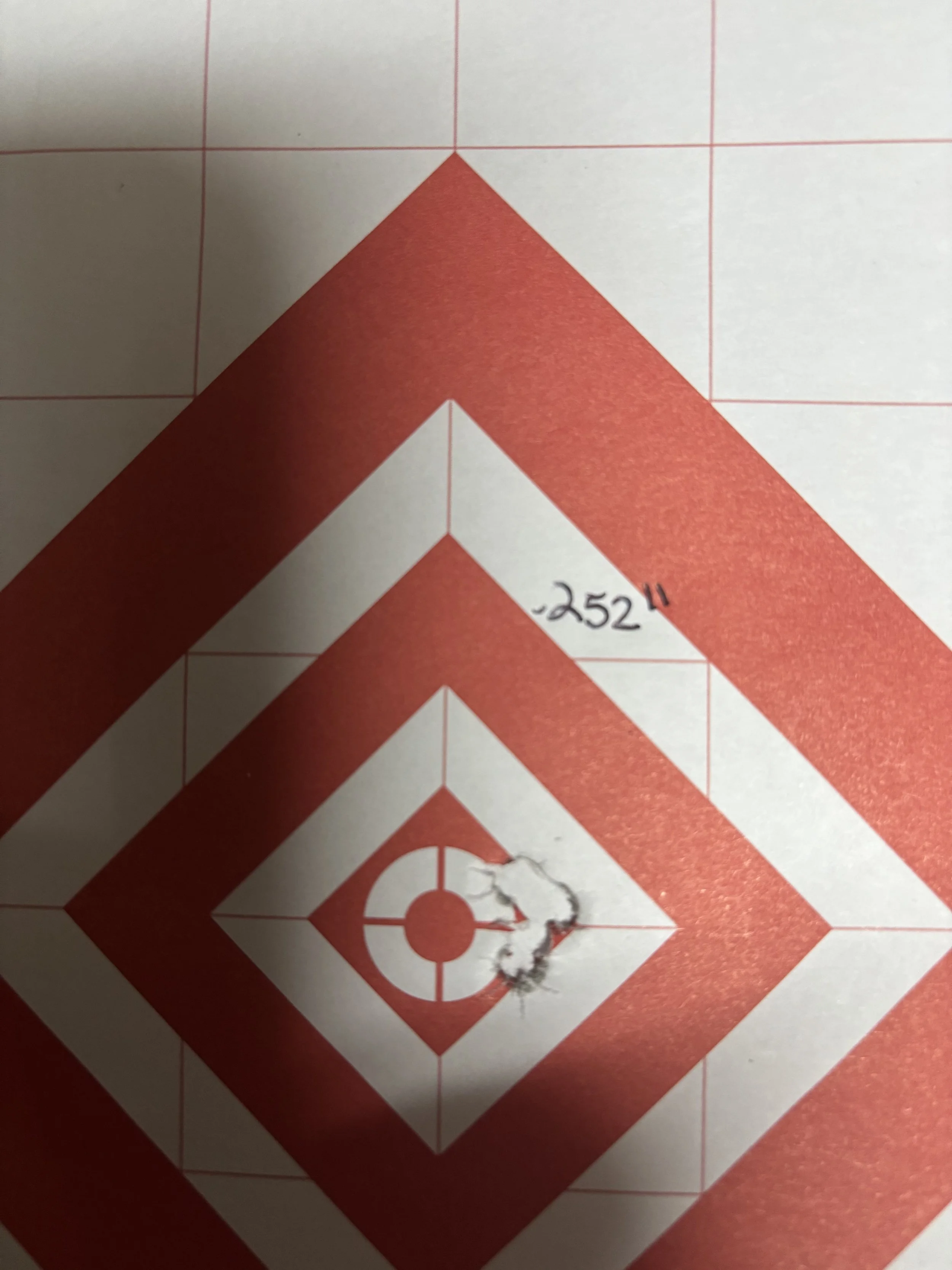 6 PPC, five shot grouping at 100 yards